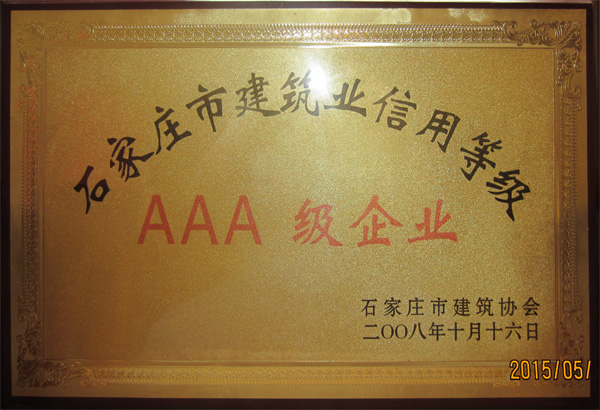 石家莊市建筑業信用等級AAA級企業